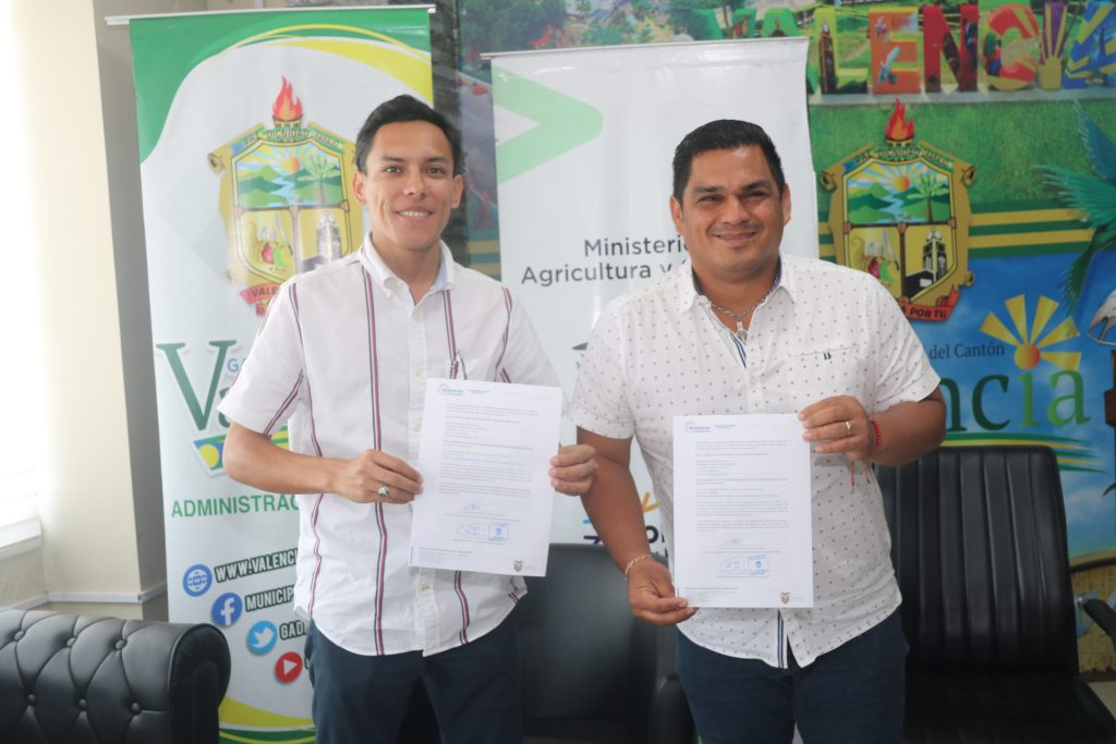 El alcalde de Valencia firmó el convenio de Cooperación Interinstitucional para la Legalización de Tierras entre el Ministerio de Agricultura y Ganadería (MAG) y el GAD Municipal de Valencia.