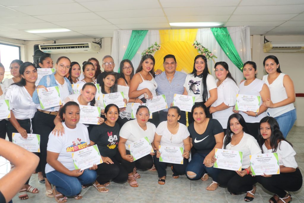 Un nuevo grupo de mujeres del proyecto Mujeres Emprendedoras en Acción se graduaron y recibieron sus certificados de manos del alcalde del cantón.