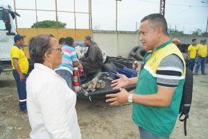 Hasta el taller municipal del cantón Valencia acudió la alcaldesa (s) para verificar los trabajos de mantenimiento de las volquetas adquiridas por el Cabildo valenciano.