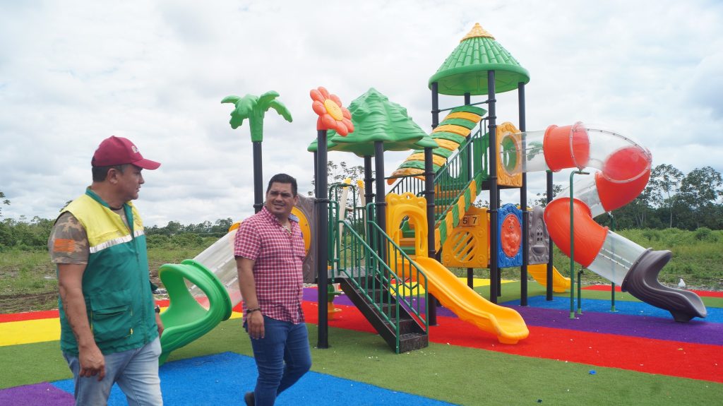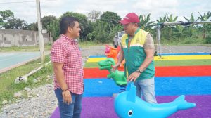 El Administrador del Cantón, inspeccionó el avance de estas obras, que tienen características propias. En general cuentan con césped sintético, balancines, sube y baja, columpios y juegos serie mini Castillos, serie Palmas, serie Bosque, serie Marino, distribuidas entre estas áreas.