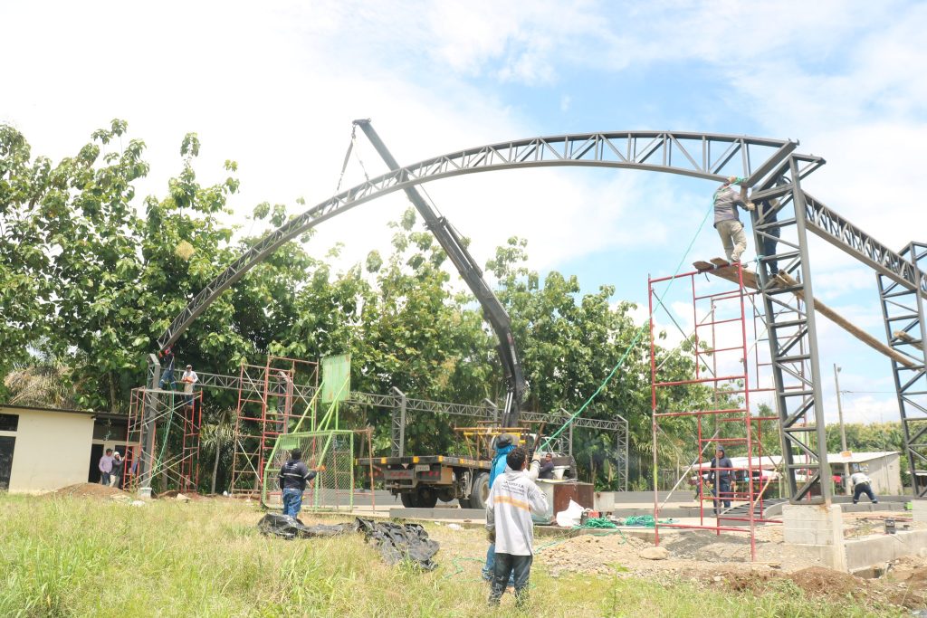 Las columnas tipo cerchas (estructuras metálicas) soportarán la cubierta en la cancha de usos múltiples del sector San Pedro de la Y.
