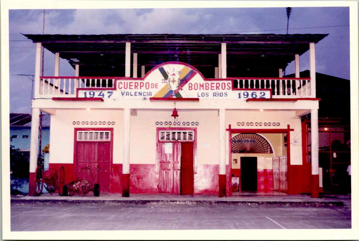 El Benemérito Cuerpo de Bomberos de nuestra parroquia fue fundado en 1947, siendo su Primer Jefe el Señor Juan Vera Montero y Comandante el Señor Juan Pasquel Jiménez. Durante sus años de vida institucional no obstante ser una Institución de VOLUNTARIOS, ha tenido una destacada actuación en el convivir parroquial. Con los reducidos impuestos y la poca atención que le han brindado los Gobiernos de turno ha prestado eficiente servicio en los flagelos y en los variados problemas que ha tenido que enfrentar la parroquia en busca de la superación. El Benemérito Cuerpo de Bomberos cuenta con edificio propio y un carro tanque que elocuentemente habla de la generosidad del pueblo valenciano, pues lleva una leyenda que dice ESFUERZO DEL PUEBLO VALENCIANO PARA SU DEFENSA. Cabe mencionar la gestión cumplida en la Institución por los Señores: Juan Vera Montero, Juan Pasquel Jiménez, Aquiles Osorio Cárdenas y Daniel Macías Molina, gracias a cuya gestión ha sido remodelado el edificio e incrementado el personal.